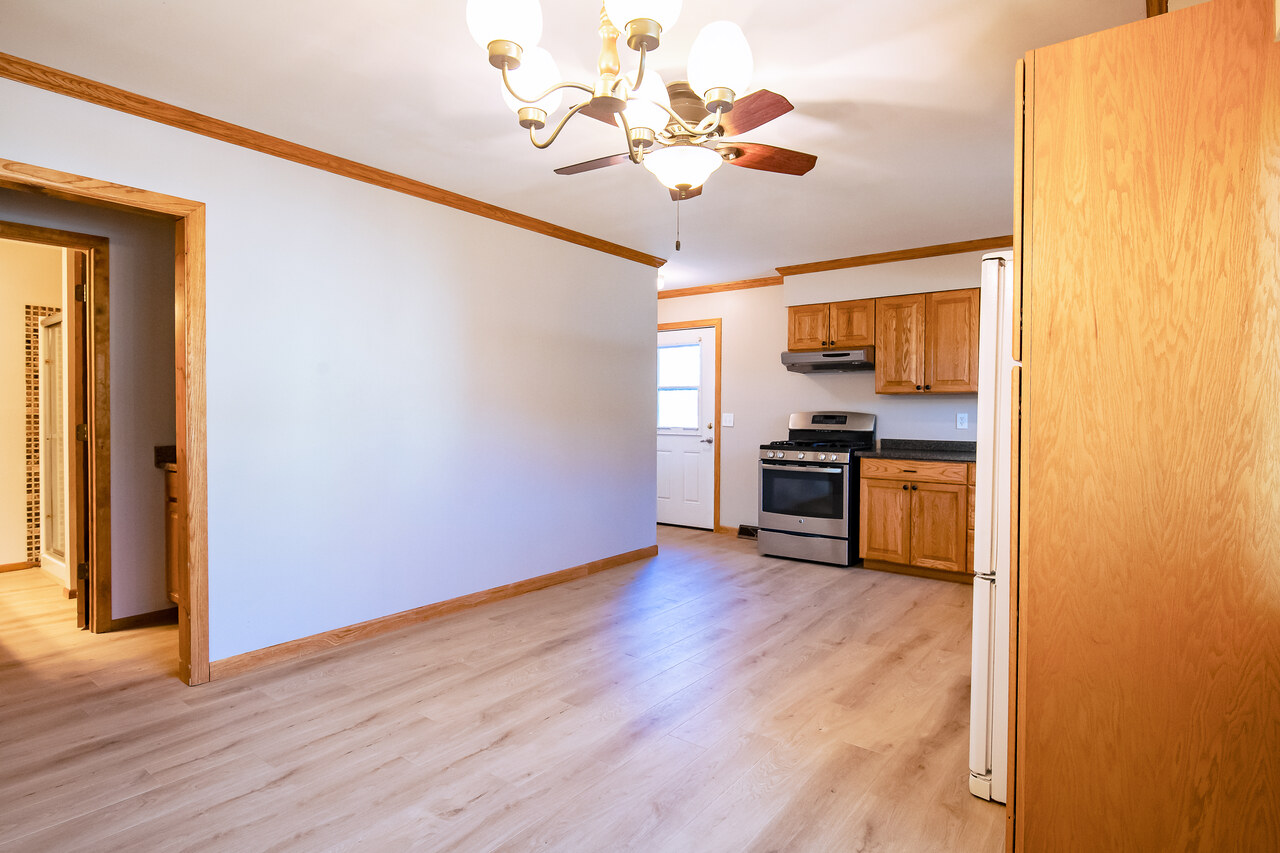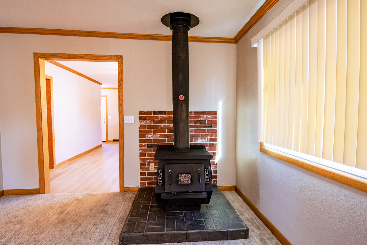 This beautifully refreshed home features new flooring installed in 2026, fresh paint, and an updated kitchen with updated cabinets and countertops. The home has central air and gas forced air heat, plus enjoy the classic charm of a wood stove for cozy winters. There is a fenced backyard and a detached garage.